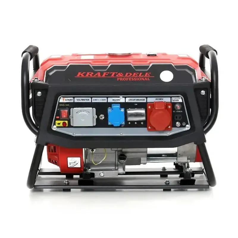 Generatorul trifazic Kraft&Dele KD137 este un echipament portabil pe benzina, dotat cu motor in 4 timpi de 7CP, capabil sa genereze o putere maxima de 3000W si continua de 2800W. Poate alimenta consumatori la tensiuni de 12V, 230V si 380V, fiind potrivit atat pentru aplicatii casnice, cat si industriale.