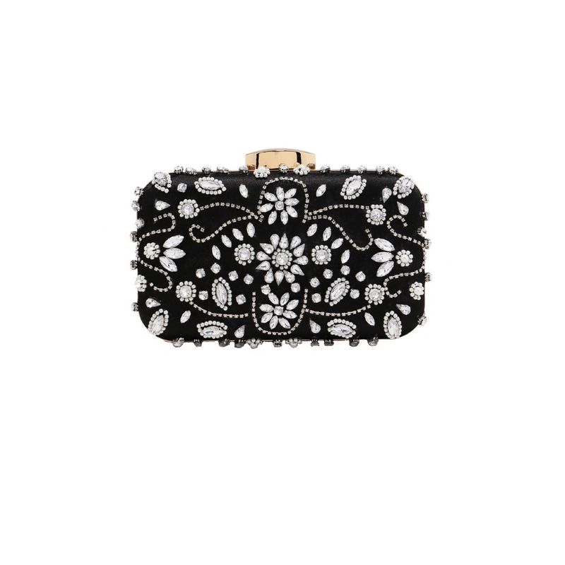 Gentuta dama eleganta, neagra, cu pietre transparente si argintii, clutch, 200x55x115mm Gentuta dama eleganta, neagra, cu pietre transparente si argintii, clutch, 200x55x115mm