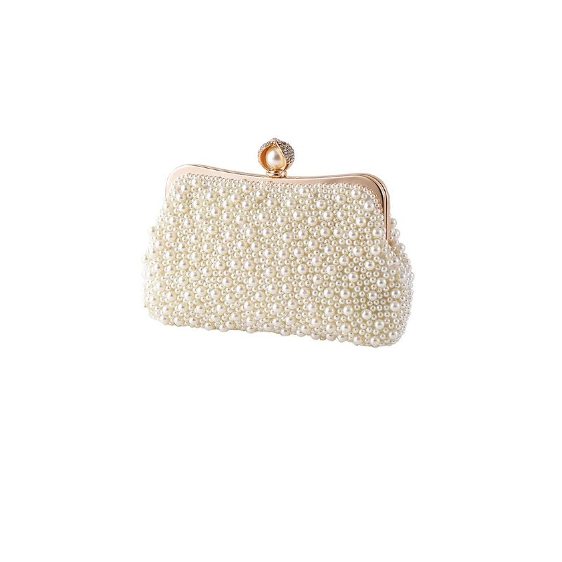 Poseta dama , clutch, eleganta, aurie cu perlute albe, 220x45x160mm