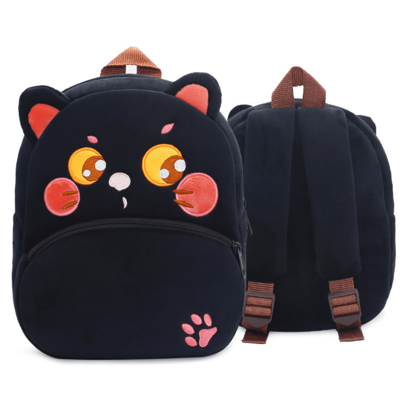 Ghiozdan copii din plus, pentru Copii prescolari / Gradinita, Dasbo®, moale si adorabil, pentru gradinita si joaca, Model pisicuta neagra, plus moale, bretele ajustabile, 26x24x10cm. Ghiozdan magic pentru micii exploratori!
