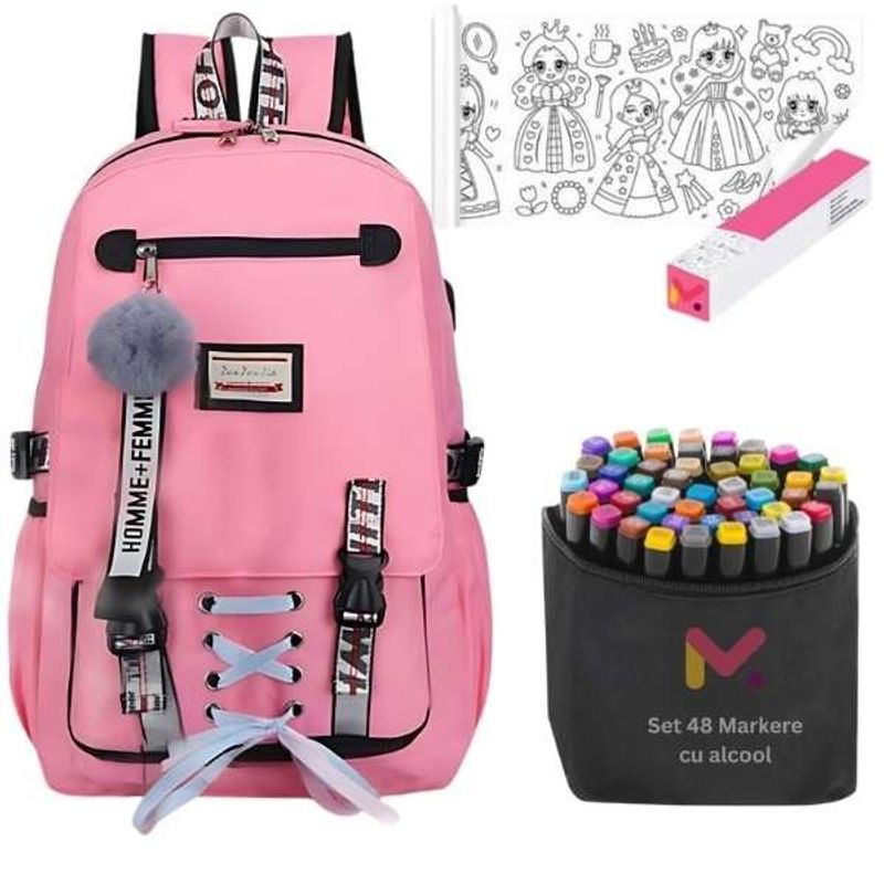 Ghiozdan pentru Copii, Impermeabil, Port USB, 30 x 14 x 47 cm, Roz cu Rola Hartie Auto-Adeziva si Decupabila pentru Desenat, 3 m Ghiozdan pentru Copii, Impermeabil, Port USB, 30 x 14 x 47 cm, Roz cu Rola Hartie Auto-Adeziva si Decupabila pentru Desenat, 3 m