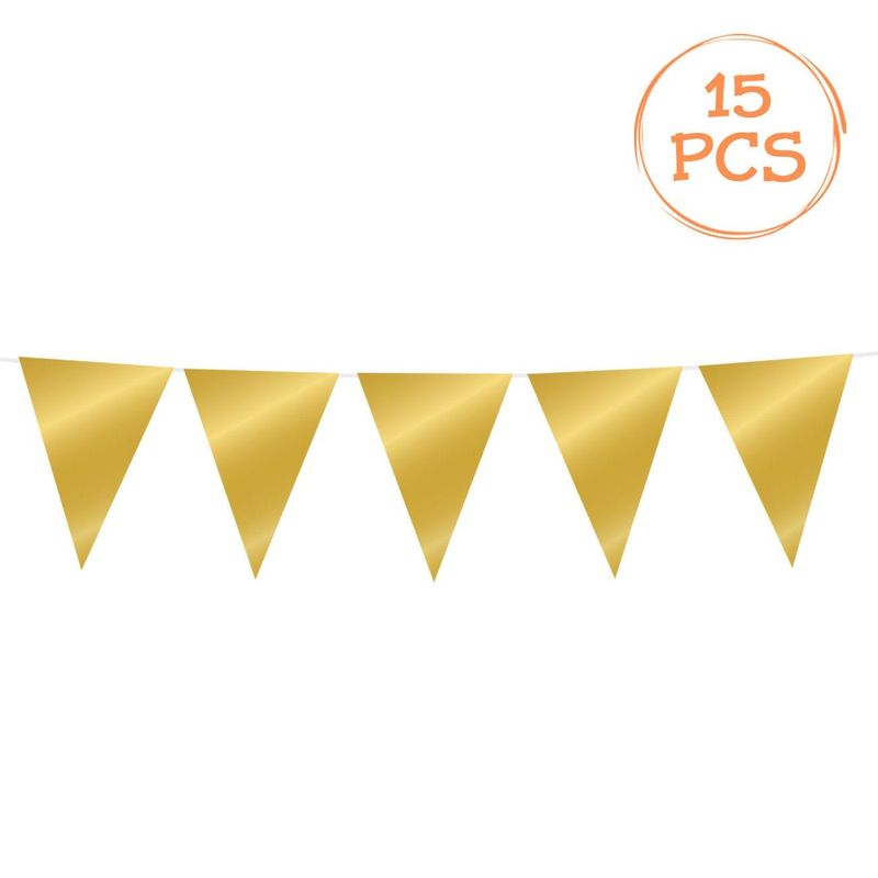 Ghirlanda plastic, 15 steaguri, lungime 10m, culoare auriu, set 15 bucati Ghirlanda plastic, 15 steaguri, lungime 10m, culoare auriu, set 15 bucati