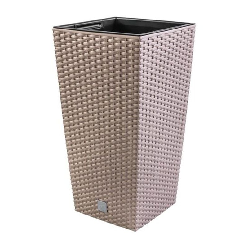 Ghiveci decorativ de flori, Prosperplast, Rato, imitatie ratan, patrat, cafeniu, 32.5x32.5x61 cm