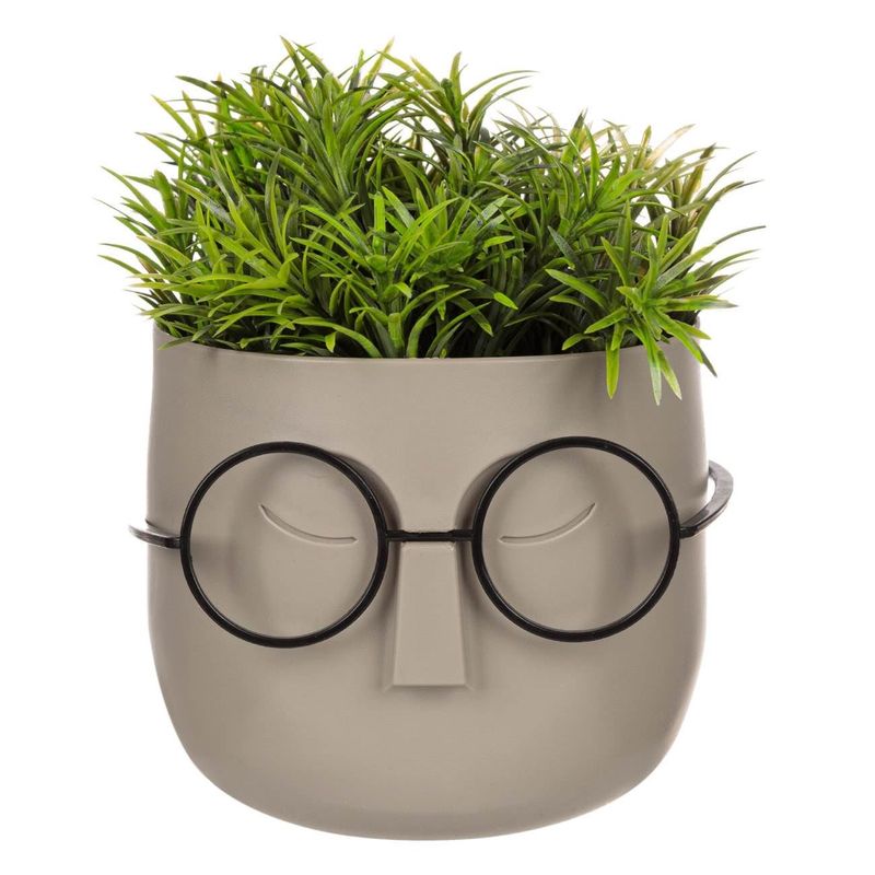 Ghiveci decorativ fata cu ochelari, plastic, bej, 11 x 11 x 14cm, planta artificiala Ghiveci decorativ fata cu ochelari, plastic, bej, 11 x 11 x 14cm, planta artificiala
