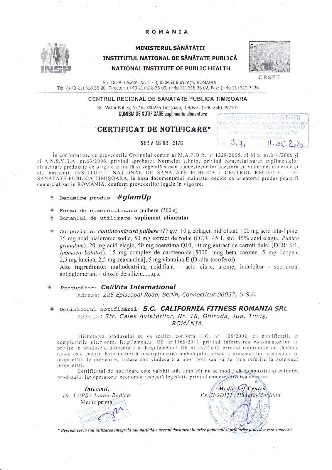 Observatie: Toate produsele au Certificat de Control al Calitatii, Asigurarea Calitatii si de bune Practici de Fabricatie
