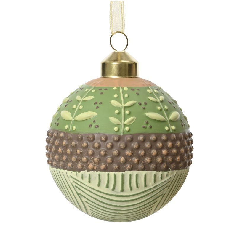 Glob brad Craciun imprimeu frunze, 8 cm, sticla, multicolor Glob brad Craciun imprimeu frunze, 8 cm, sticla, multicolor