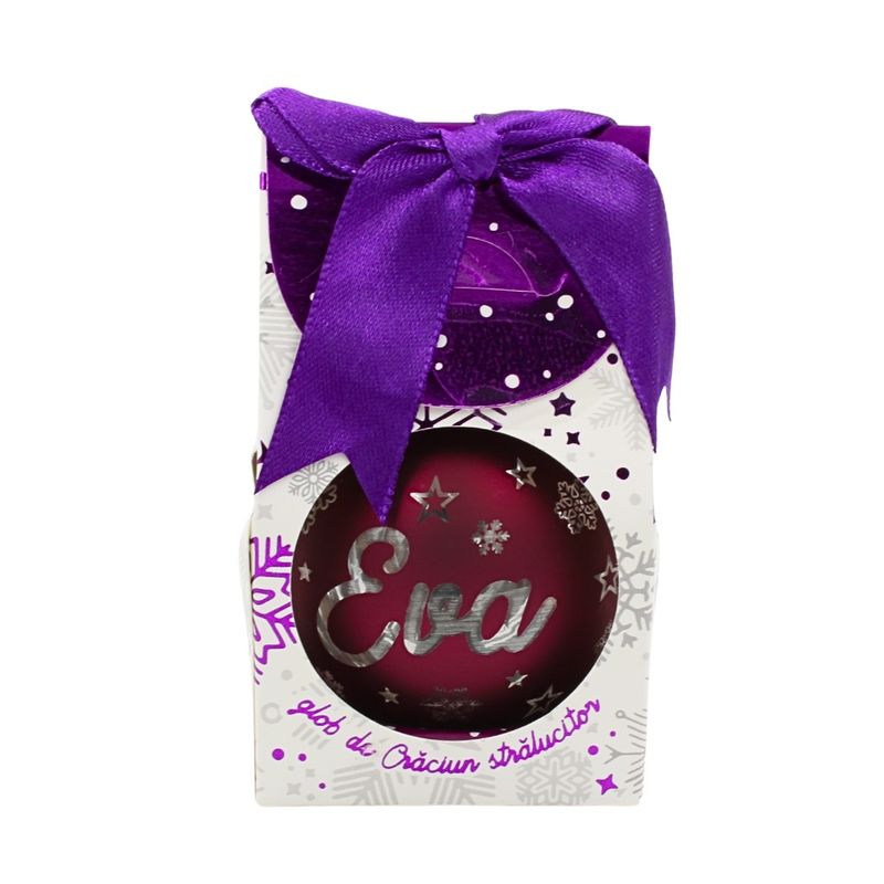 Glob de Craciun, cu led, culoarea visiniu, nume „Eva" Glob de Craciun, cu led, culoarea visiniu, nume „Eva"