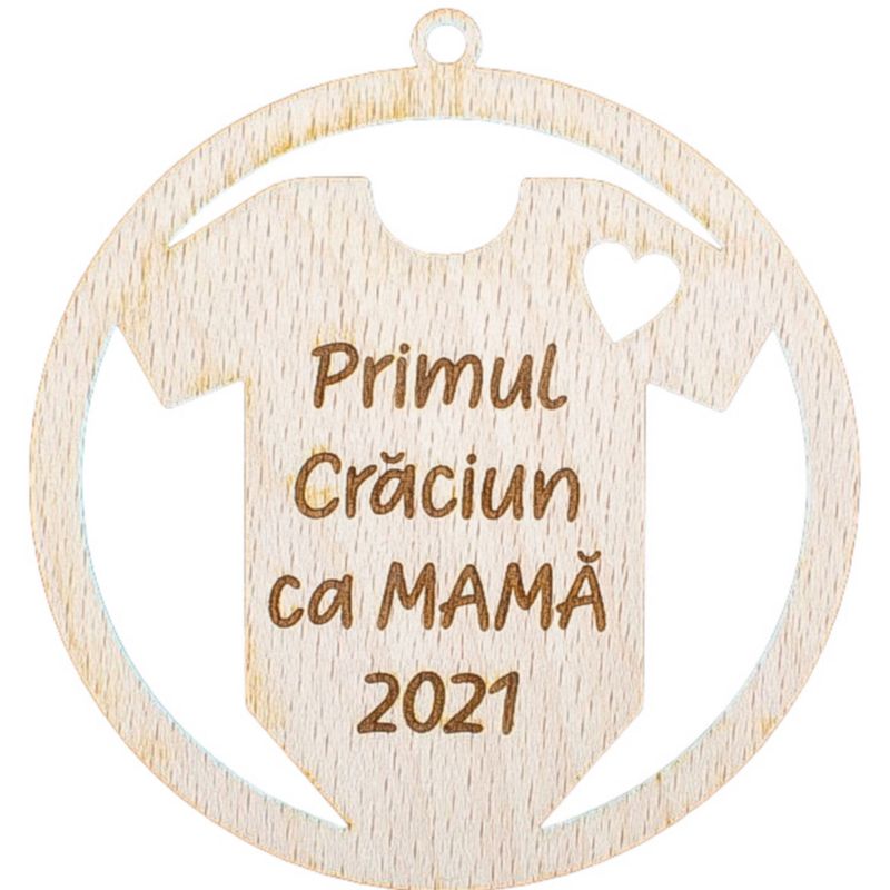 Glob de Craciun HH903 din Lemn Model Primul Craciun ca mama Glob de Craciun HH903 din Lemn Model Primul Craciun ca mama