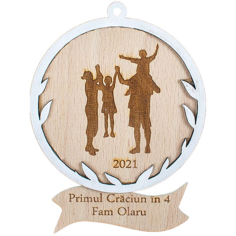Glob de Craciun Personalizat Familie HH896 din Lemn Model Primul Craciun in 4 Glob de Craciun Personalizat Familie HH896 din Lemn Model Primul Craciun in 4