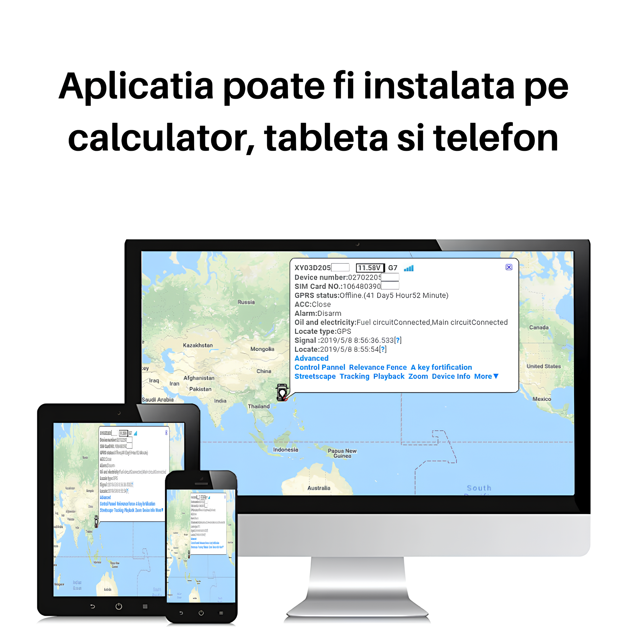 Aplicatie gratuita si platforma de urmarire web: Urmareste de la distanta pe telefon, tableta sau PC prin aplicatia noastra gratuita si platforma, care sunt compatibile cu dispozitivele Android sau iOS.