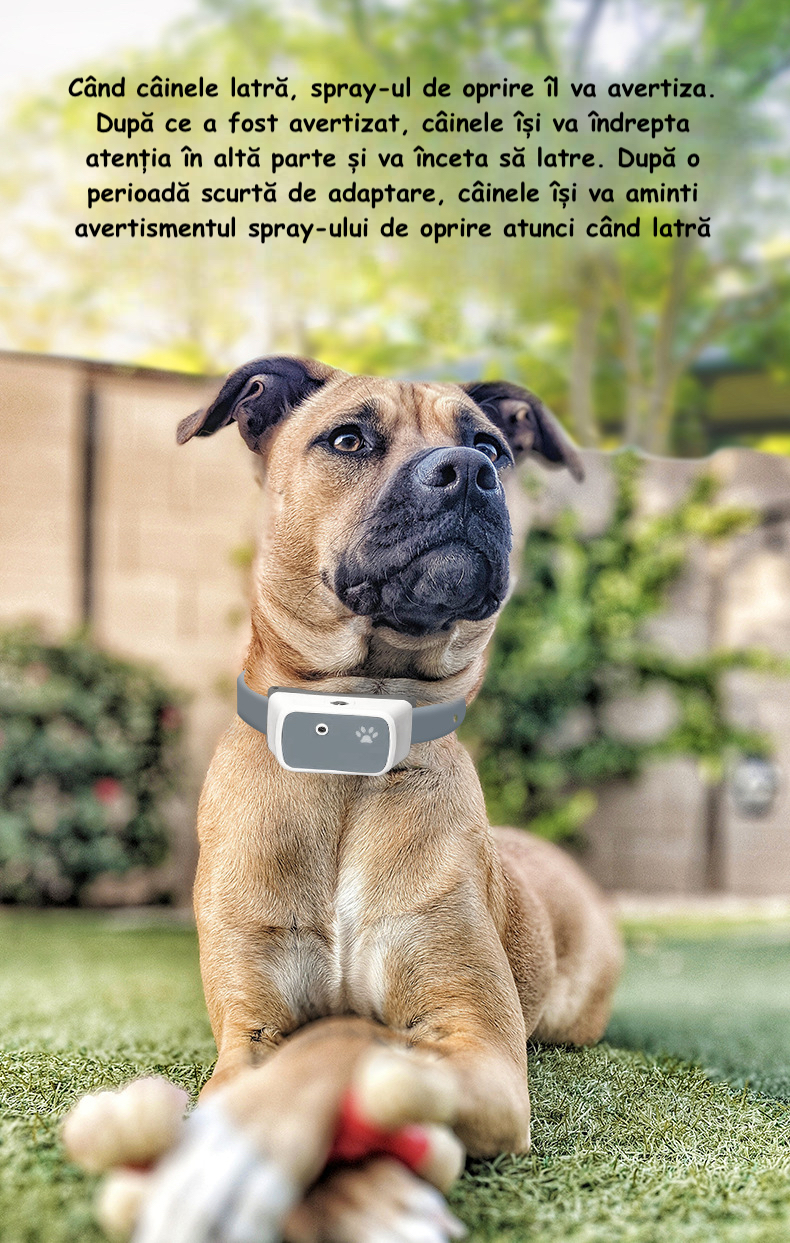 Zgarda anti-latrat te ajuta sa controlezi excesul de zgomot fara a afecta bunastarea animalului tau, oferind o solutie umana si eficienta pentru latratul excesiv. Pulverizatorul 2 in 1 pentru dresaj utilizeaza o tehnica inofensiva de pulverizare pentru a distragere atentia cainelui si pentru a-l incuraja sa-si ajusteze comportamentul.