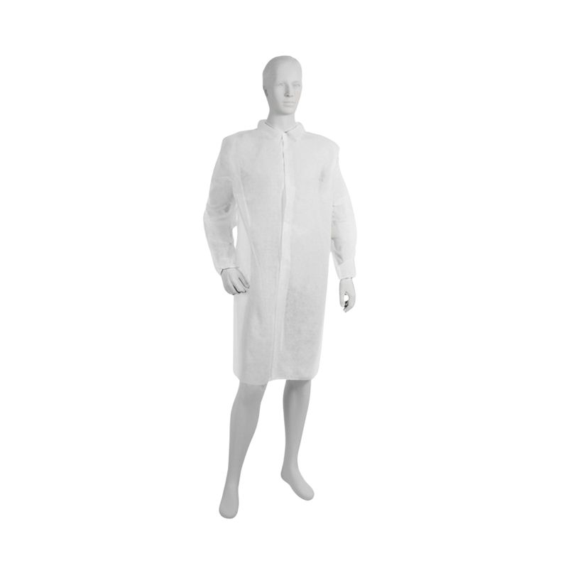 Halat vizitator unica folosinta alb, polipropilena, nesteril, cu capse, 10 buc/set Halat vizitator unica folosinta alb, polipropilena, nesteril, cu capse, 10 buc/set - XXL