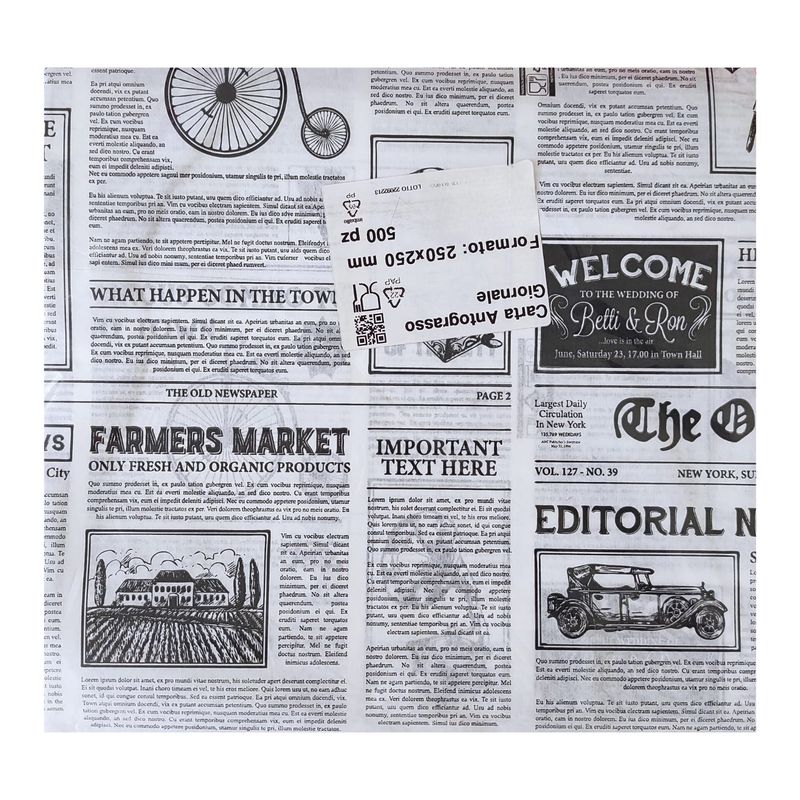 Hartie ambalare alimente rezistenta la grasimi, alba, print ziar, 40g, 500 coli/pachet, Neste®