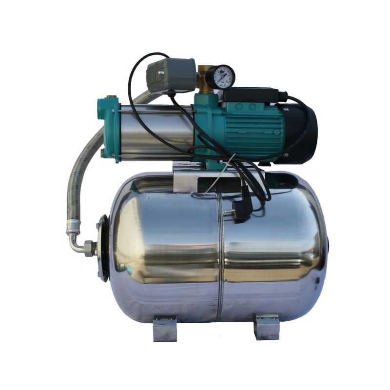 Este alcatuit dintr-un rezervor cu membrana cu capacitate de 50 litri inox, presostat pentru functionarea automata, manometru, electropompa prevazuta cu cablu de alimentare cu stecher si kit de racord intre pompa si rezervor, ce vin deja montate si gata de utilizare.