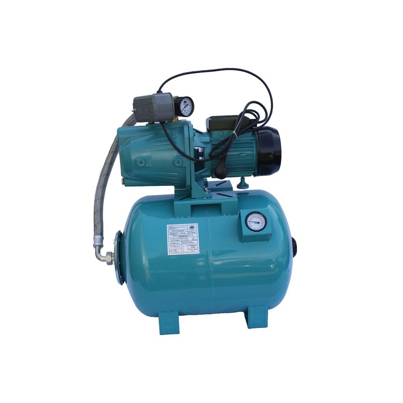 Sistem automat de alimentare cu apa din puturi si fantani APC JY 100 A/50 utilizat pentru distribuirea apei si ridicarea presiunii. Alimentarea cu apa este o necesitate pentru orice gospodarie si pentru orice tip de activitate comerciala, industriala sau agricola. APC a conceput hidroforul APC JY 100 A/50 pentru ca oricine sa poata beneficia de accesul nerestrictiv la apa. Hidroforul functioneaza in regim automat pentru a furniza apa in orice moment al zilei este nevoie. Resedintele din zone in care nu exista posibilitatea racordarii la reteaua de apa pot dispune de toate conditiile necesare traiului si activitatilor cotidiene prin instalarea acestui hidrofor. Acesta are o capacitate mare de pompare si poate asigura livrarea apei in instalatii sanitare cu o presiune foarte buna. Este alcatuit dintr-un rezervor cu manometru capacitate de 50 litri, presostat pentru functionarea automata, manometru, electropompa prevazuta cu cablu de alimentare cu stecher si kit de racord intre pompa si rezervor, ce vin deja montate si gata de utilizare. Electropompa folosita in sistem garanteaza o durata de functionare mare si performante constante. Corpul electropompei este din fonta. Motorul este de tip asincron, inchis, racit cu ventilare externa. Rotorul este montat pe rulmenti lubrifiati pe intreaga durata de functionare pentru a garanta silentiozitate si durata mare de viata. Are protectie termoampermetrica incorporata si condensator cuplat permanent. Gradul de protectie al motorului este IP 44. Pompa este prevazuta cu un cablu de alimentare de 1 m si stecher CEE 7/7. Rezervorul este de tip orizontal, cu o capacitate de 50 litri, cu membrana EPDM, prevazut cu bride de sustinire in partea inferioara si bride pentru fixarea pompei in partea superioara. O dimensiune mai mare a rezervorului duce la cresterea duratei de viata a produsului. Rolul manometrului montat pe rezervor este de a indica presiunea aerului din vas, usurand monitorizarea de catre utilizator. Hidrofoarele produse de APC sunt caracterizate printr-o functionare silentioasa si un bun randament hidraulic. Sistemul "tub Venturi" permite o crestere a presiunii, o securitate in functionare si o aspiratie din puturi de pana la 9 metri adancime.Datorita dimensiunilor reduse si usurintei cu care poate fi transportat, acesta poate fi folosite pentru instalatii fixe sau temporare si poate fi deconectat din circuit fara efort. Hidroforul trebuie instalat intr-un loc protejat de intemperii.