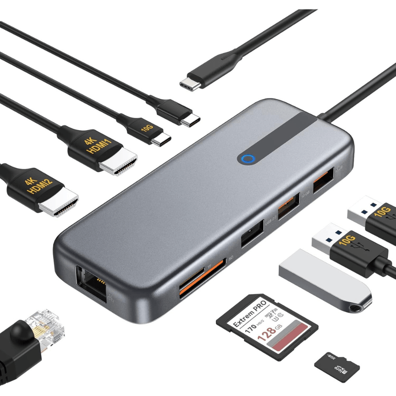 📦 Pachetul include: 1 x Hub Multiport 10 in 1 USB-C, manual de utilizare.