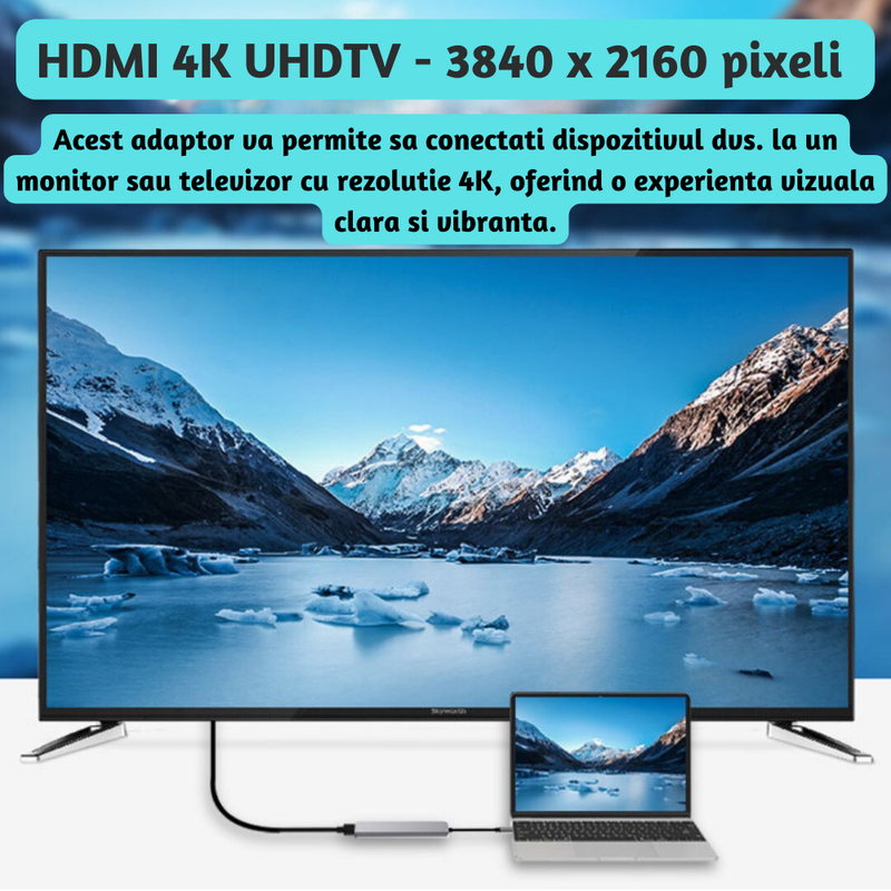 1. *HDMI 4K:* Acest adaptor va permite sa conectati dispozitivul dvs. la un monitor sau televizor cu rezolutie 4K, oferind o experienta vizuala clara si vibranta.