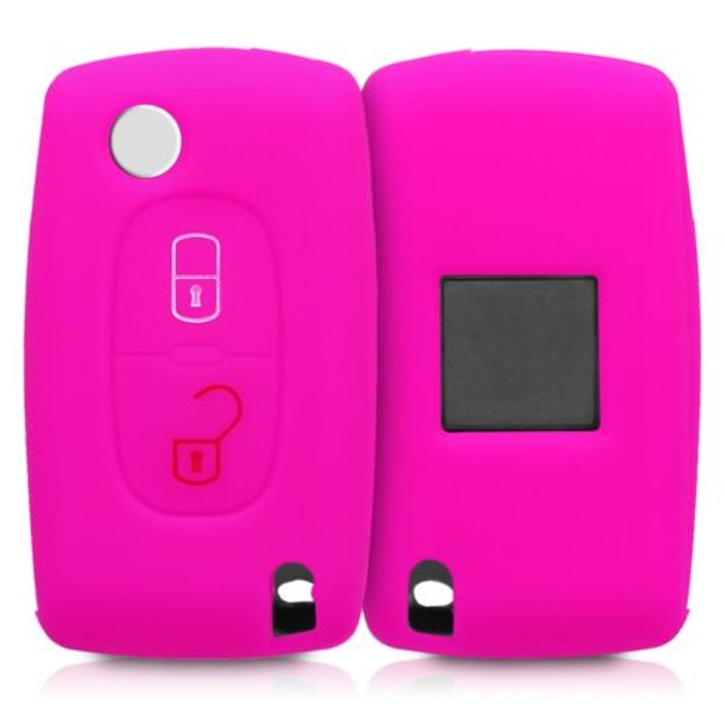Husa Cheie Auto pentru Peugeot/Citroen, 2 Butoane, Silicon, Roz, 43668.08 Husa Cheie Auto pentru Peugeot/Citroen, 2 Butoane, Silicon, Roz, 43668.08
