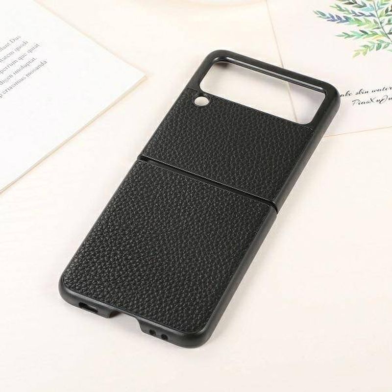 Husa de protectie din piele ecologica, pentru Samsung Z Flip 3, Negru Husa de protectie din piele ecologica, pentru Samsung Z Flip 3, Negru