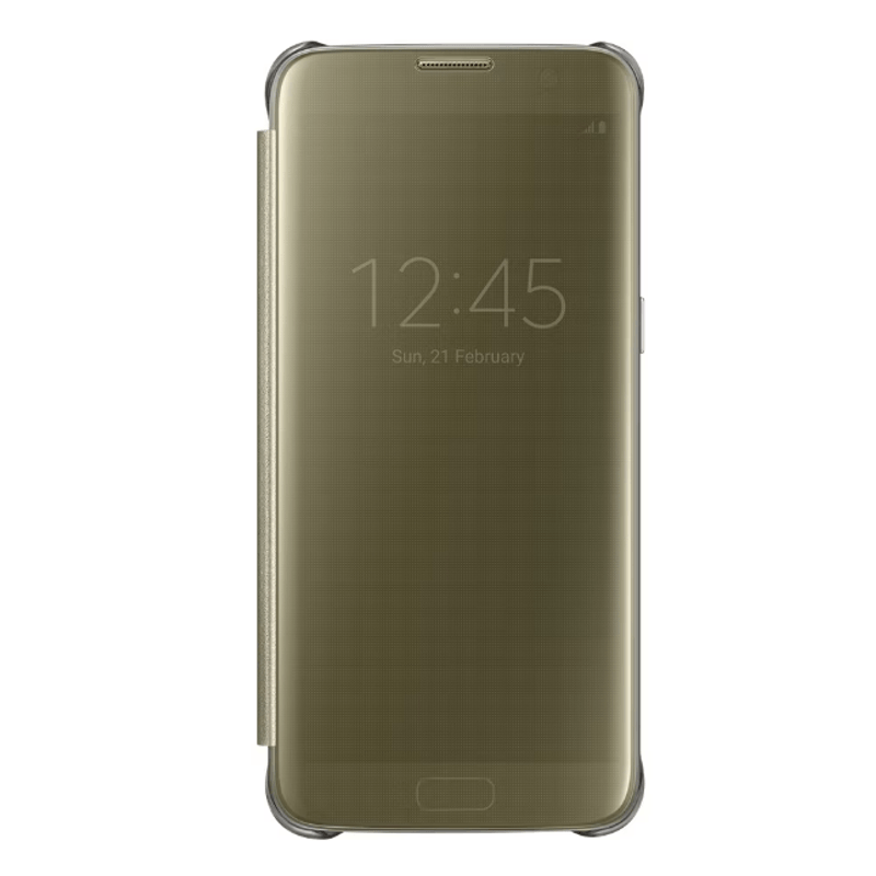 Husa de protectie flip cover, Clear View compatibil cu Samsung Galaxy S10, functie stand, culoare gold