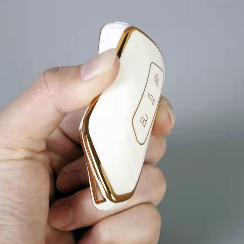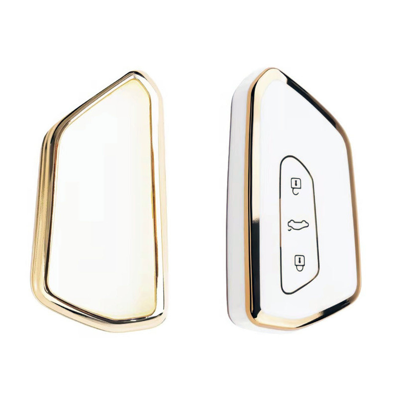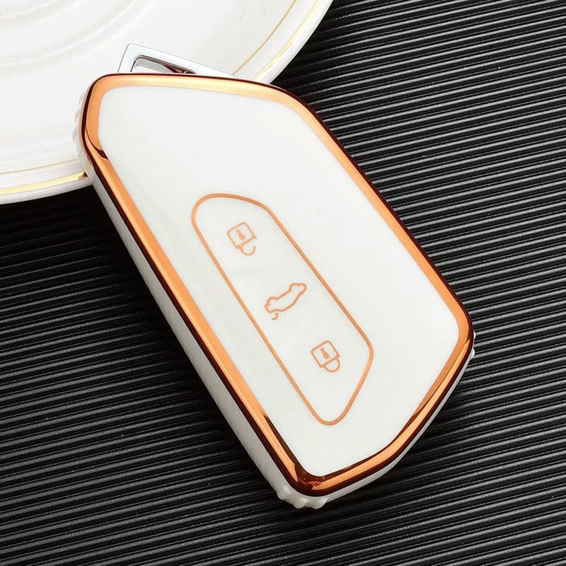 【DESIGN UNIC】Suprafata este realizata din material TPU moale lucios, culoare alb stralucitor, cu insertie aurie, astfel incat cheile masinii dvs. sa fie mai elegante, sporind in acelasi timp protectia. Acesta husa de protectie poate fi, de asemenea, un cadou foarte apreciat.