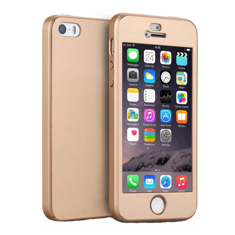 Husa Full Cover (fata + spate + folie sticla) pentru iPhone 5 / 5S / SE, Gold Husa Full Cover (fata + spate + folie sticla) pentru iPhone 5 / 5S / SE, Gold
