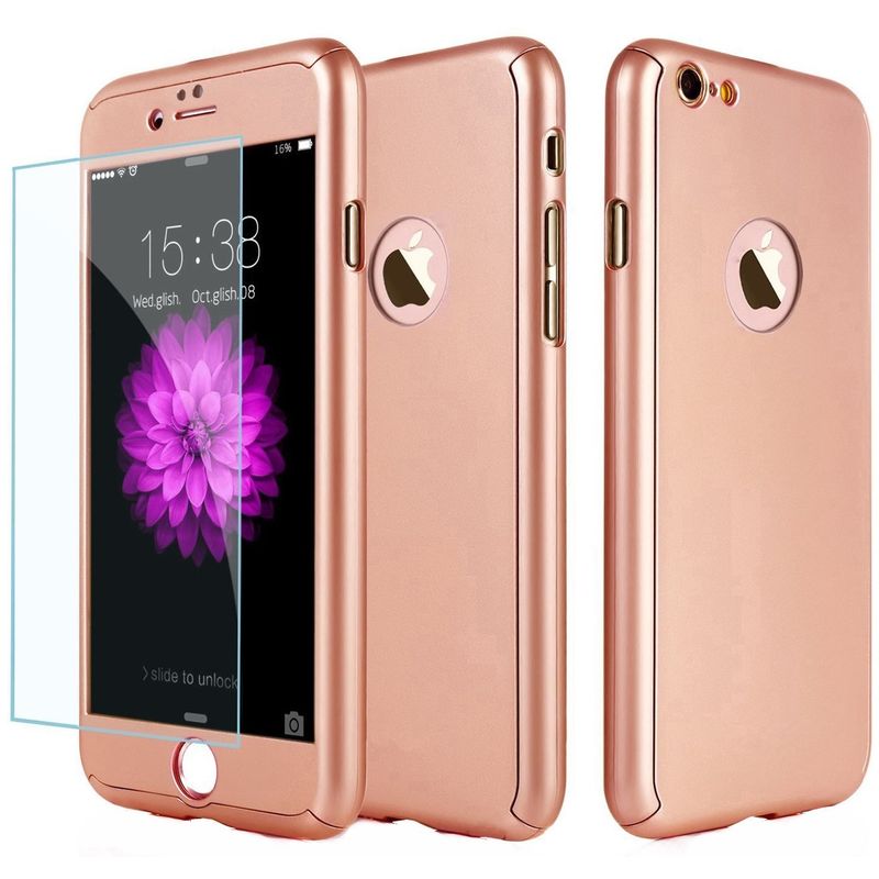 Husa Full Cover (fata + spate + geam sticla) pentru Apple iPhone 6 / 6S, Rose Gold Husa Full Cover (fata + spate + geam sticla) pentru Apple iPhone 6 / 6S, Rose Gold