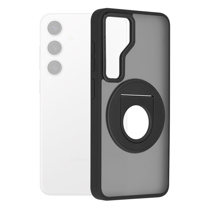 Husa Magsafe din TPU pentru Samsung Galaxy S24, cu inel, margini negre, spate semi-transparent