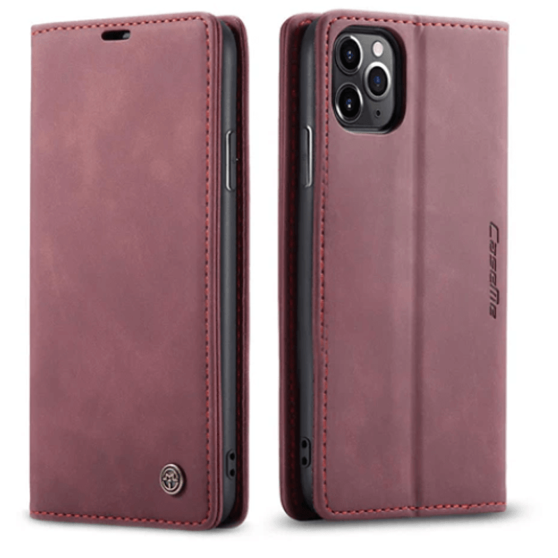 Laptop, Telefoane si TableteTelefoane mobile si accesoriiAccesorii TelefoaneHuse telefoaneHusa pentru iPhone 11 PRO, design antishock, ichidere magnetica, tip portofel, piele PU, visiniu
