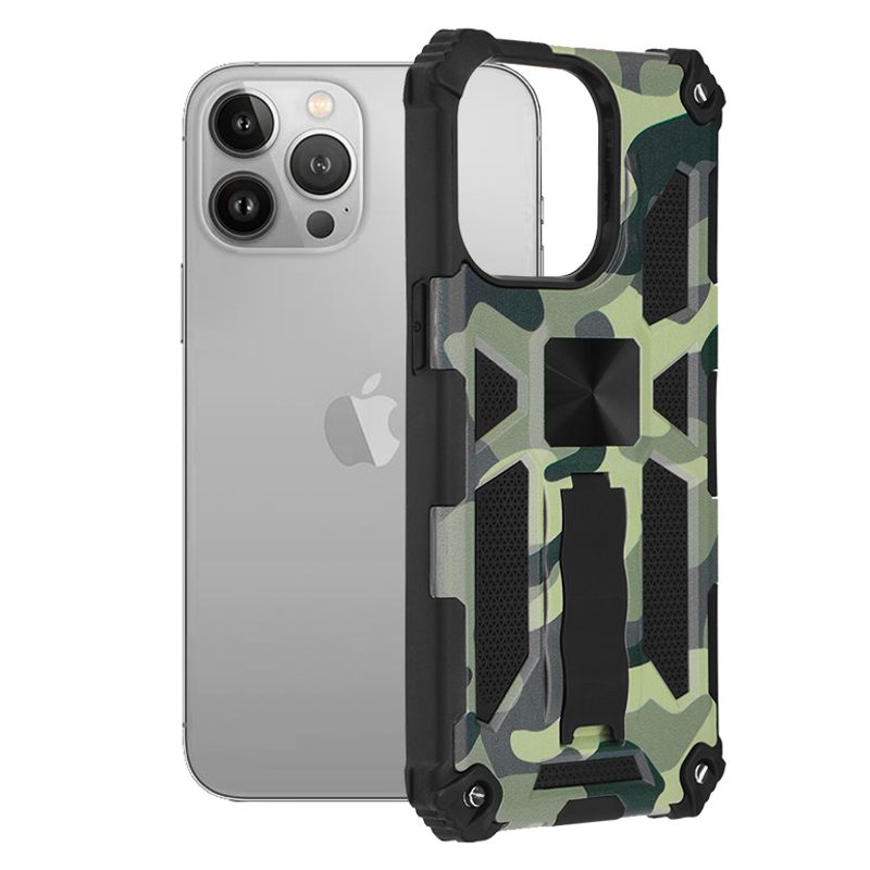Husa pentru iPhone 13 Pro Max cu functie landscape, magnet auto si aspect camufla Husa pentru iPhone 13 Pro Max cu functie landscape, magnet auto si aspect camufla