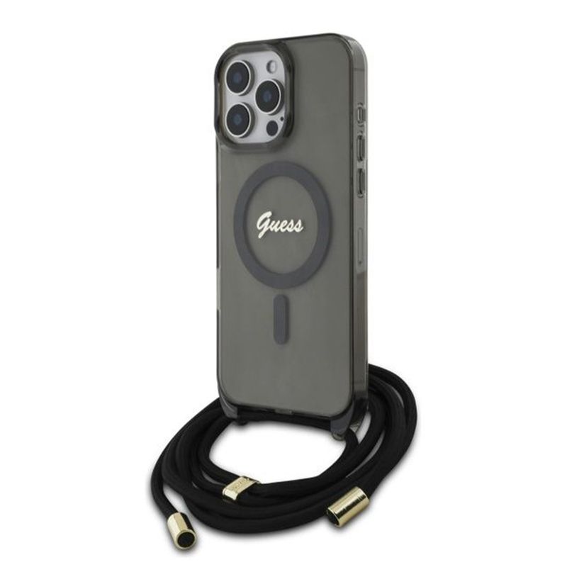 Guess - IML Crossbody Cord Script MagSafe (GUHMP16LHCTSGNSK) - iPhone 16 Pro - Negru