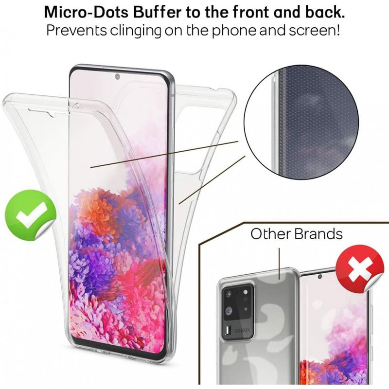 Realizata dintr-un material de calitate, ultrasubtire si rezistent din silicon, se potriveste perfect pe forma telefonului, asigurandu-i o protectie totala (spate, display si mijloc). Husa prezinta mici punctulete transparente, pentru a preveni lipirea acesteia de ecran si pentru a nu afecta functia touch.