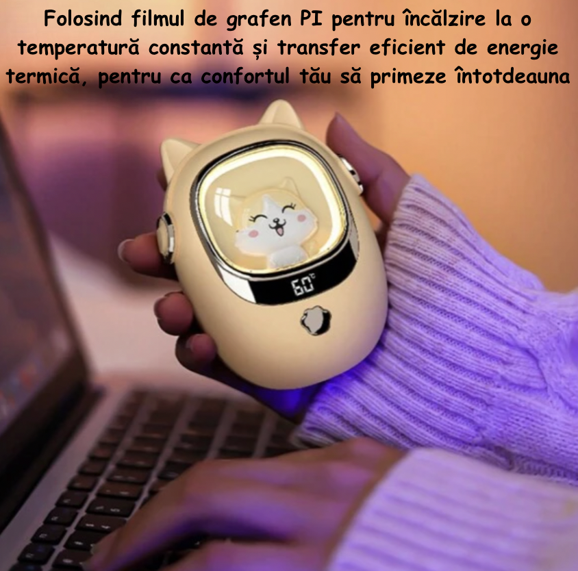 Experimentati confortul si caldura placuta in zilele reci ale iernii cu noul Incalzitor Portabil de Mana cu Baterie Externa intr-o eleganta nuanta de crem!