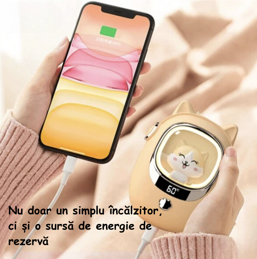 Incalzitor portabil de mana cu baterie externa, incalzire si incarcare pentru telefoane mobile, crem Incalzitor portabil de mana cu baterie externa, incalzire si incarcare pentru telefoane mobile, crem