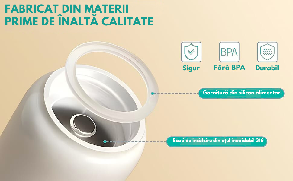 Realizat din otel inoxidabil alimentar 316 si silicon medical, fara BPA.