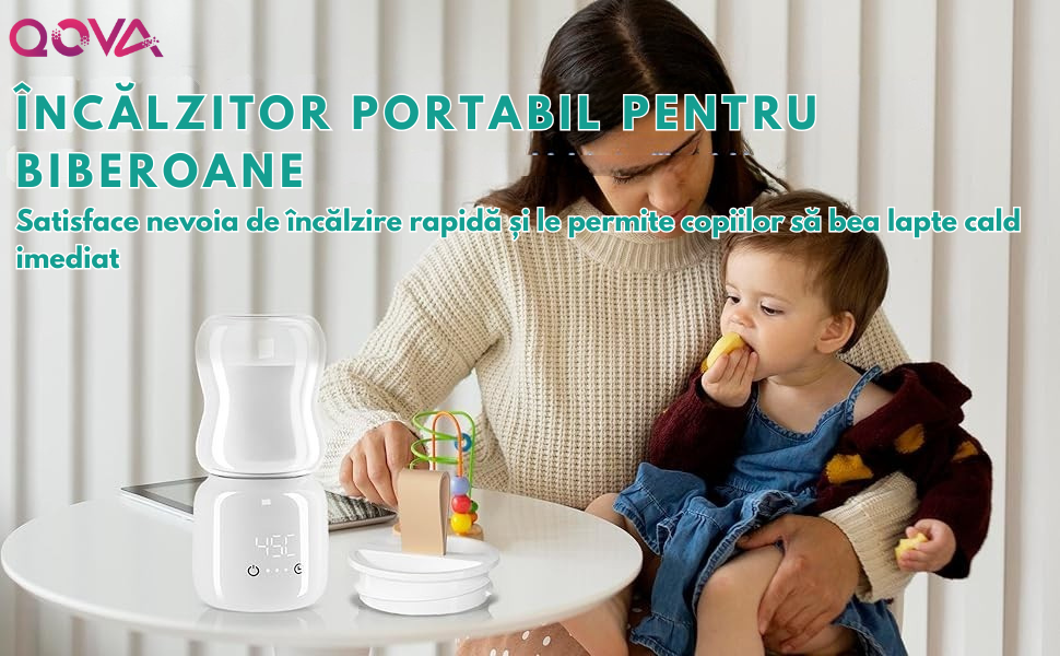 Cu incalzitorul portabil pentru biberoane QOVA, parintii scapa de griji si ofera copilului lapte cald, sigur si nutritiv in doar cateva minute. Fie ca esti acasa, la drum lung sau in parc, aparatul este creat special pentru confort, siguranta si mobilitate.