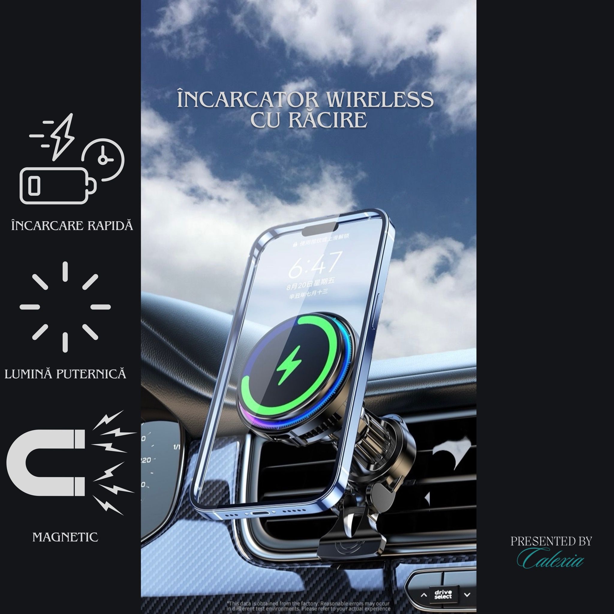 • Incarcare Eficienta: Tehnologia wireless asigura o incarcare rapida si comoda.