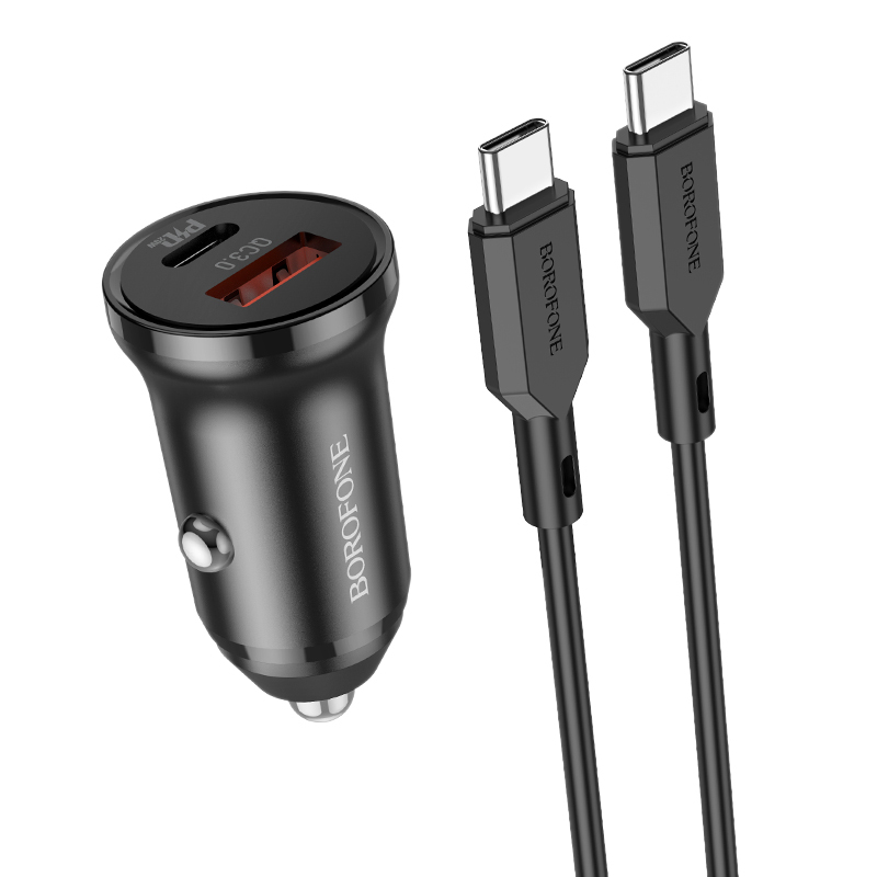 Laptop, Telefoane si TableteTelefoane mobile si accesoriiAccesorii TelefoaneIncarcatoare telefoaneIncarcator auto Borofone telefon sau tableta USB TYPE C PD 20W QC 3.0 18W cu cablu tip C la tip C inclus, negru