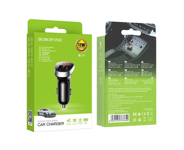 Incarcator Auto Dual USB, 12-24V, 5V 2.4 A, Borofone BZ15 LED 12W - Negru