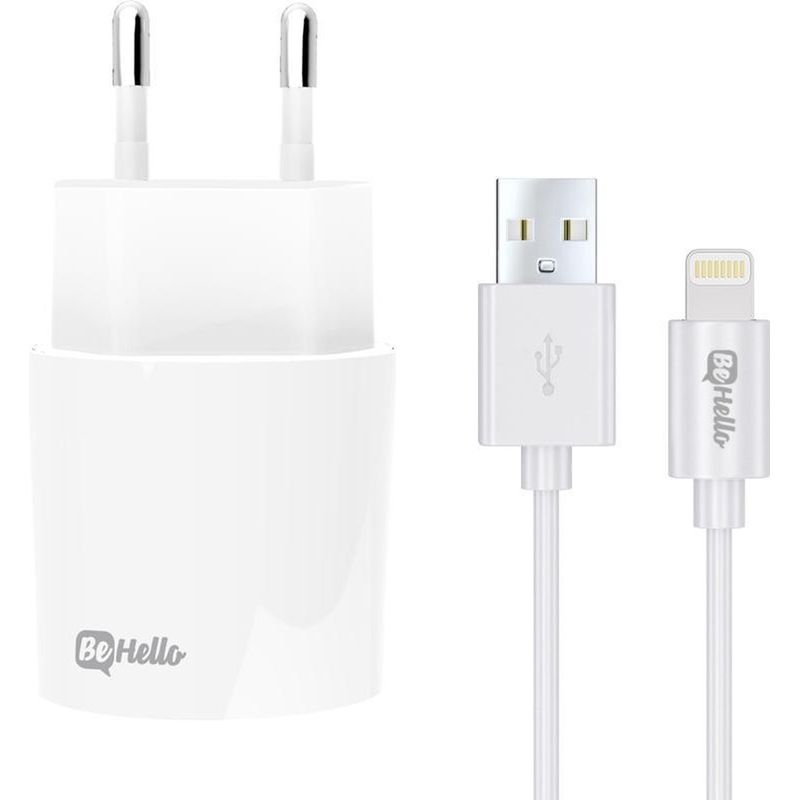 Incarcator de perete BeHello 2.1A, 1 porturi usb, inclus cablu tip USB Lightning, 1 metru, alb Incarcator de perete BeHello 2.1A, 1 porturi usb, inclus cablu tip USB Lightning, 1 metru, alb