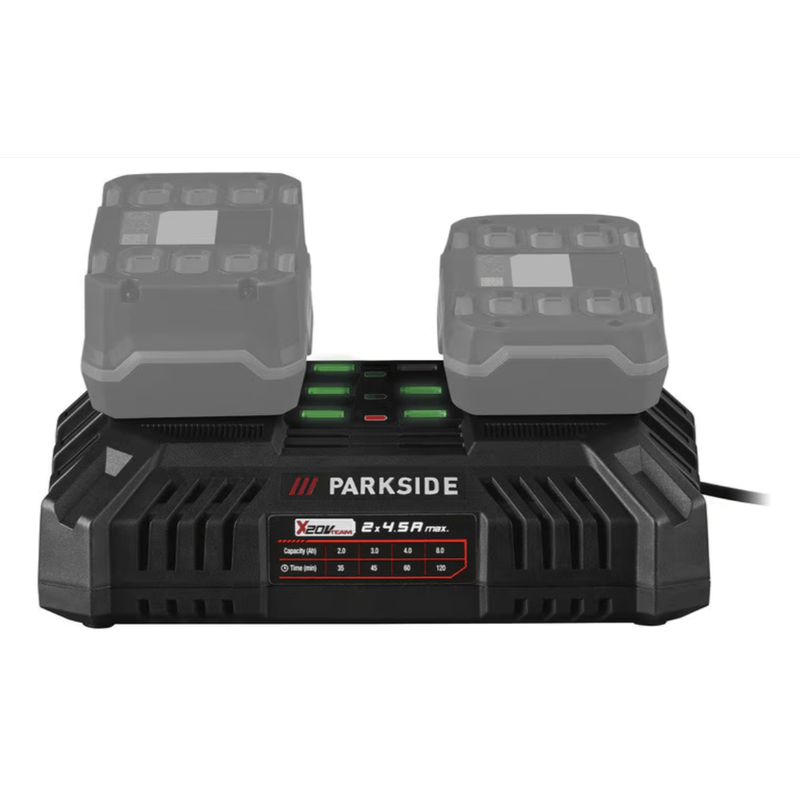 Incarcator dublu original Parkside 20V, compatibil cu acumulatori X20V Team, putere 2x 4.5A Incarcator dublu original Parkside 20V, compatibil cu acumulatori X20V Team, putere 2x 4.5A