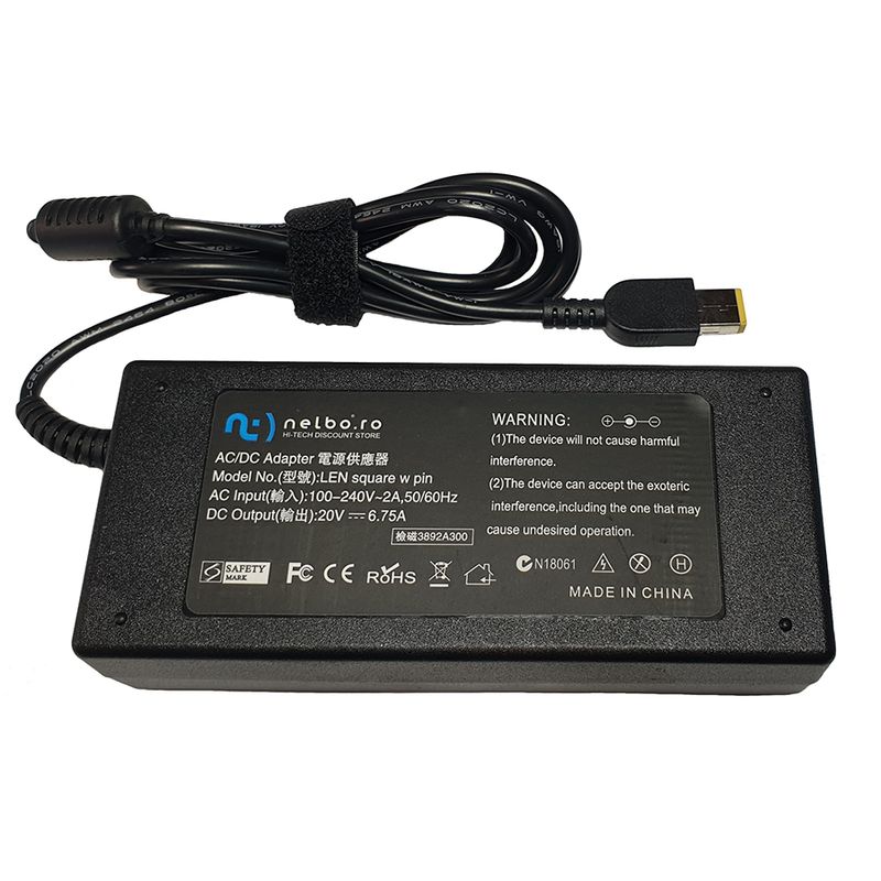 Incarcator laptop compatibil Lenovo ThinkPad T440s 20AN 135W 20V 6.75A, tip mufa dreptunghi cu pin