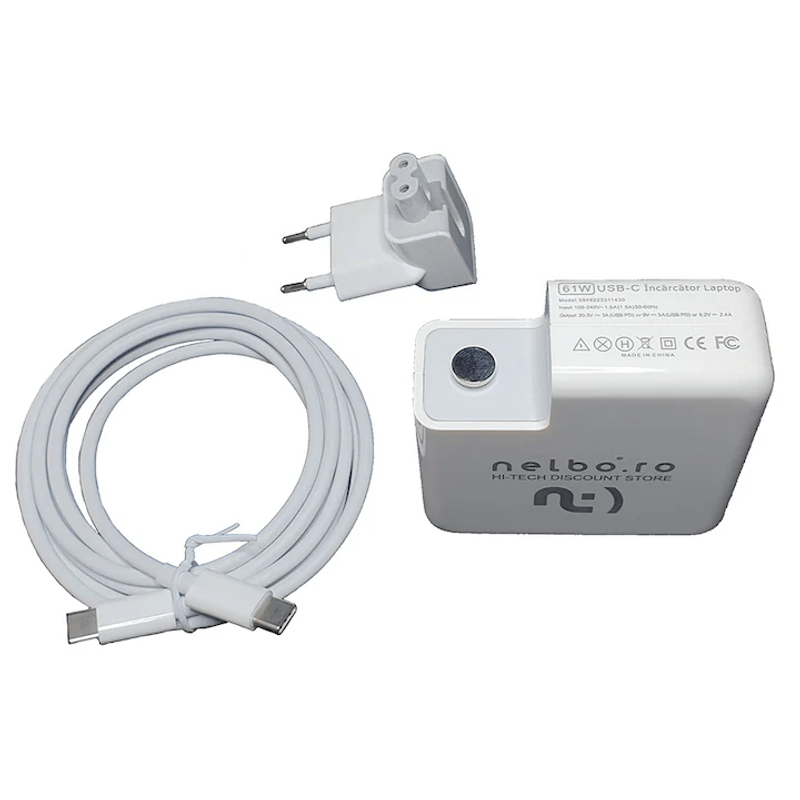 Incarcator laptop OEM compatibil cu Apple Mackbook Pro 13 inch (2016, 2017, 2018), 61W cu mufa USB-C