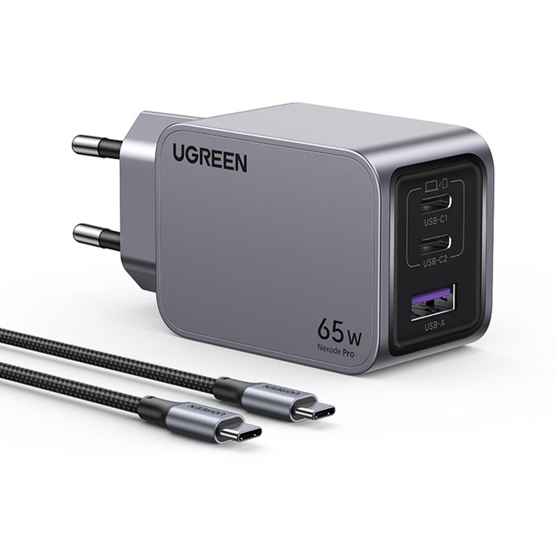 Laptop, Telefoane si TableteTelefoane mobile si accesoriiAccesorii TelefoaneIncarcatoare telefoaneIncarcator USB, 2x Type-C, GaN, Fast Charging, 65W, 3A, PD3.0, QC4.0 - UVerde Nexode Pro X755 (25871) - Gri