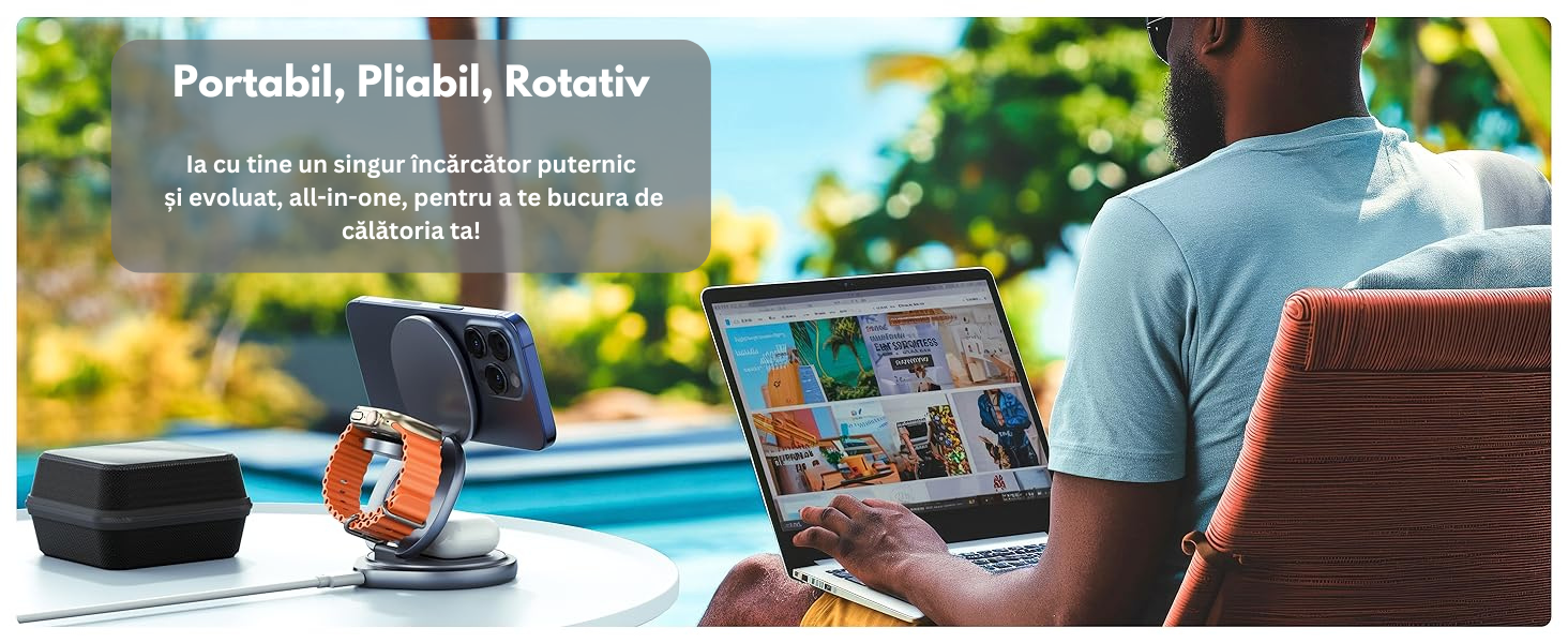 Designul inovator pliabil al incarcatorului nostru nu este doar despre portabilitate, ci despre alegere. Indiferent daca preferati sa incarcati intr-o pozitie verticala, pliat compact sau chiar in modul peisaj pentru vizualizarea continutului media, acest incarcator se adapteaza nevoilor dvs.