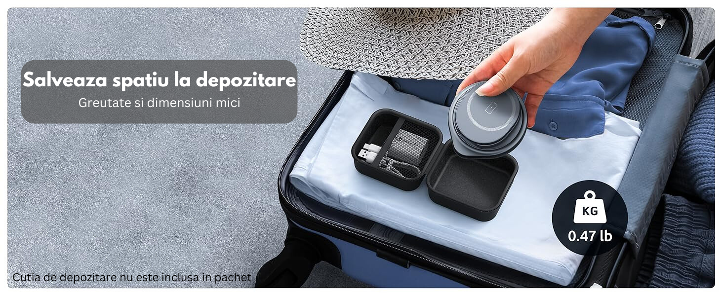 Datorita dimensiunilor sale reduse, puteti lua incarcatorul cu dumneavoastra oriunde ati merge, fara batai de cap. Designul sau elegant si cele doua imbinari, va ajuta sa il puteti plia exact asa cum aveti nevoie. Designul elegant si materialele de inalta calitate vor completa perfect orice birou.Incarcatorul Magnetic 3 in 1 este excelent nu numai pentru cei carora le place sa calatoreasca. Datorita celor doua imbinari, acesta poate fi pus in buzunar fara probleme, nu ocupa spatiu aproape deloc in bagajul dumneavoastra.