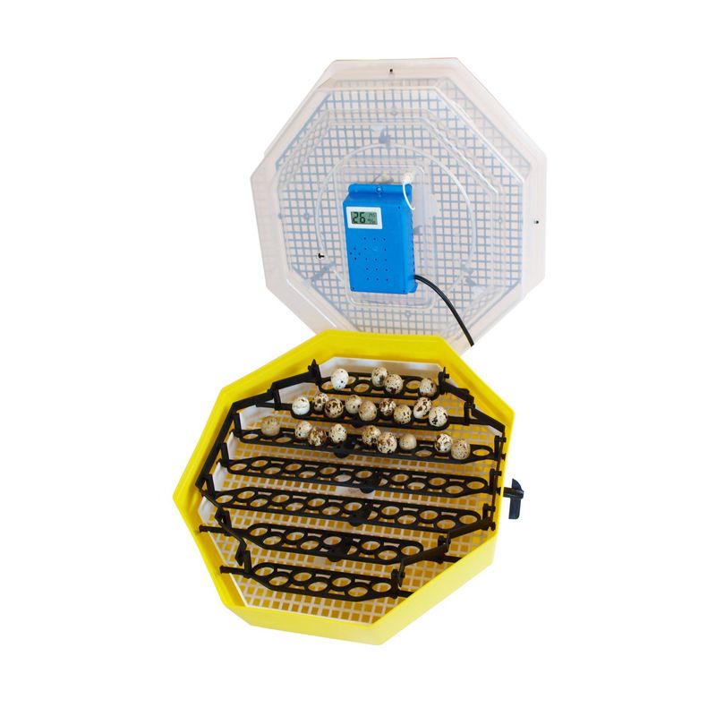 Incubatorul Cleo 5DTH este prevazut cu un dispozitiv de intoarcere a oualor , usor de folosit prin simpla rotire de 3 ori pe zi stanga-dreapta si cu un termohigrometru pentru afisarea temperaturii si a umiditatii din interiorul incubatorului.