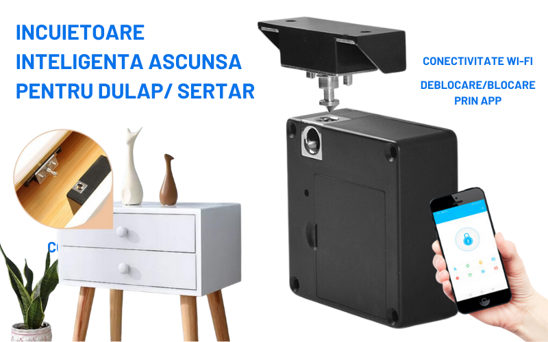 Incuietoare inteligenta ascunsa pentru dulapuri si sertare – Conectivitate Wi-Fi si acces facil prin aplicatie mobila.
