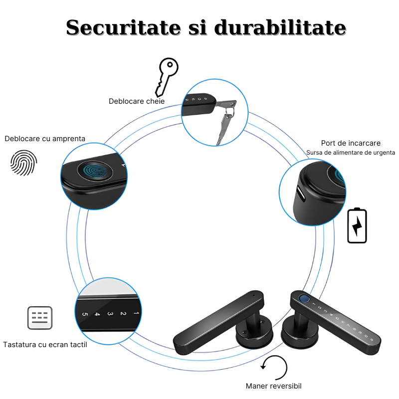 🔹 Control prin aplicatie mobila – Blocheaza/deblocheaza usa de la distanta si gestioneaza permisiunile direct de pe telefonul tau!