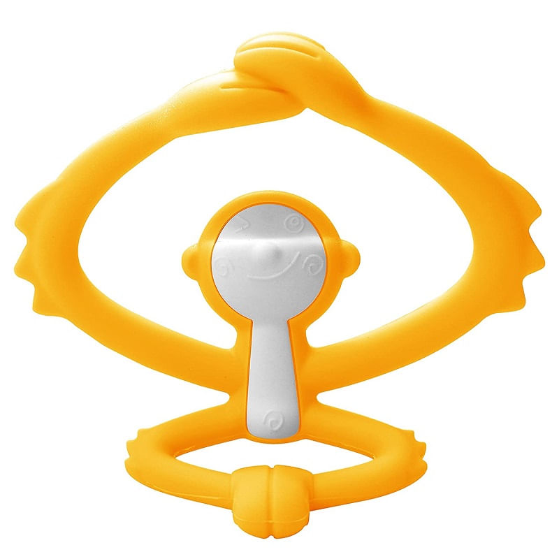- designul special de forma unei maimute haioase are o suprafata cu rizuri pentru masajul gingiilor bebelusului;